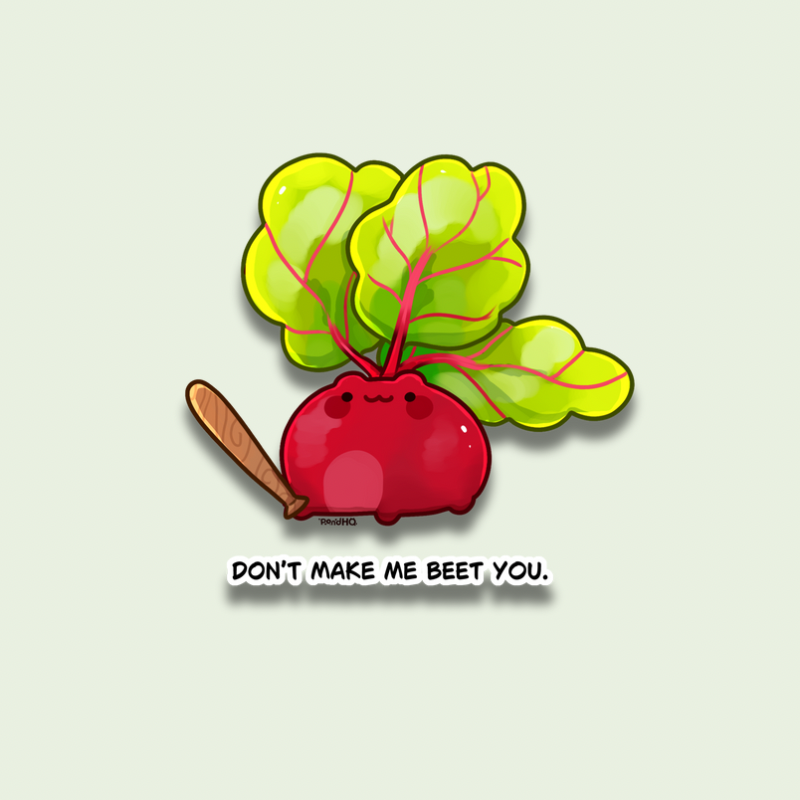 Don't make me beet you sticker is backordered and will ship as soon as it is back in stock.