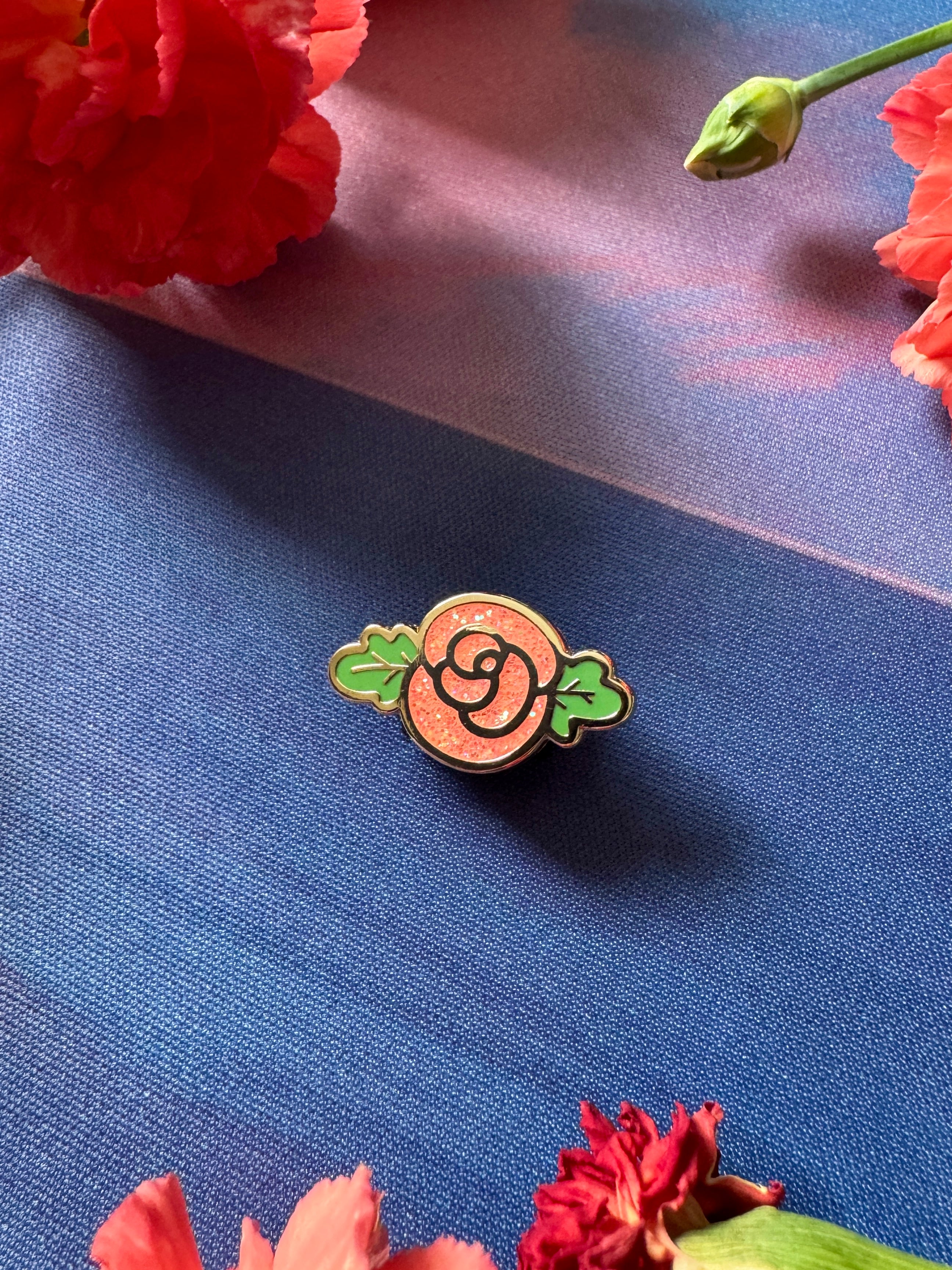 Sparkly rose hard enamel mini pin